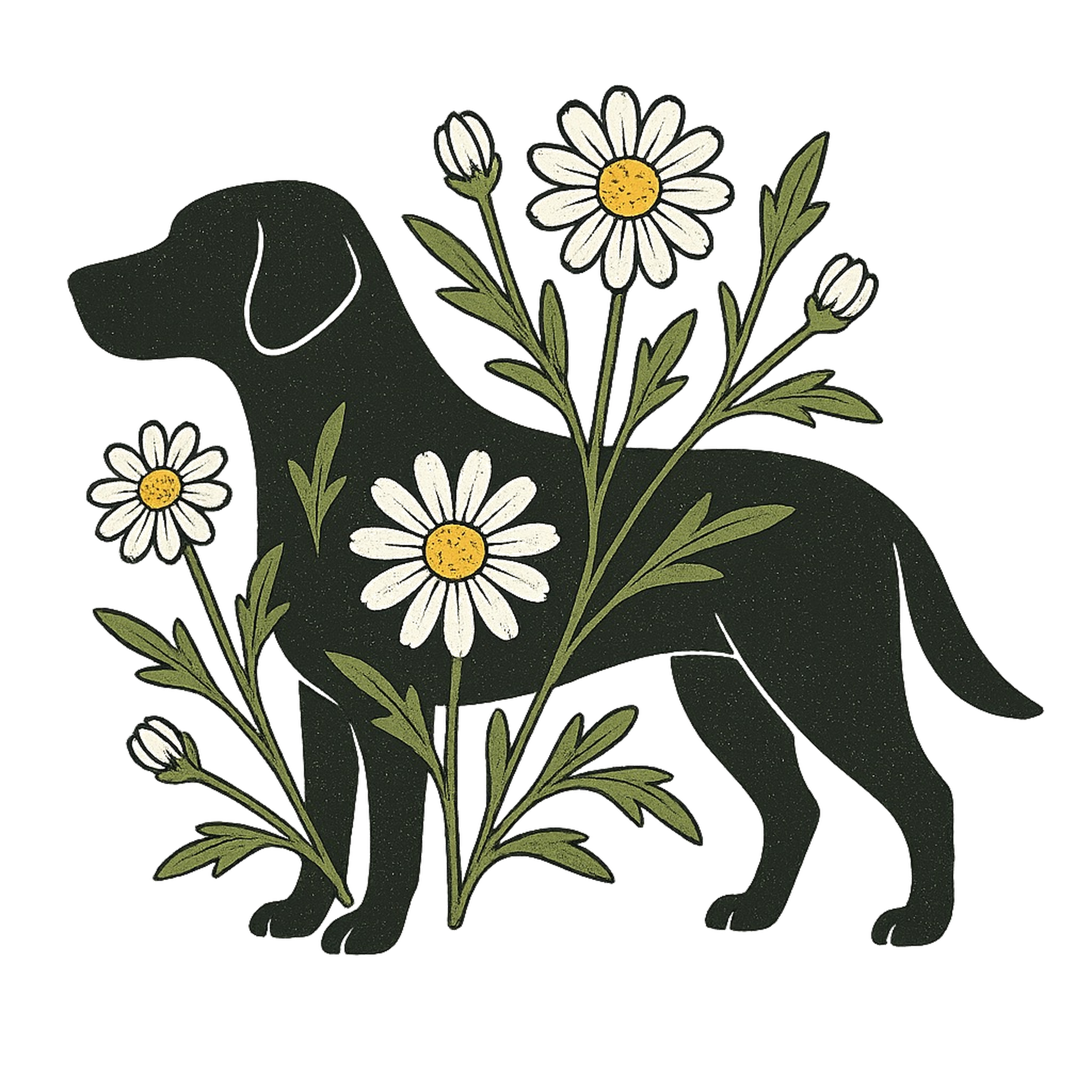 やさしいラブのシルエットに、白いデイジーが咲き誇るアートデザイン。