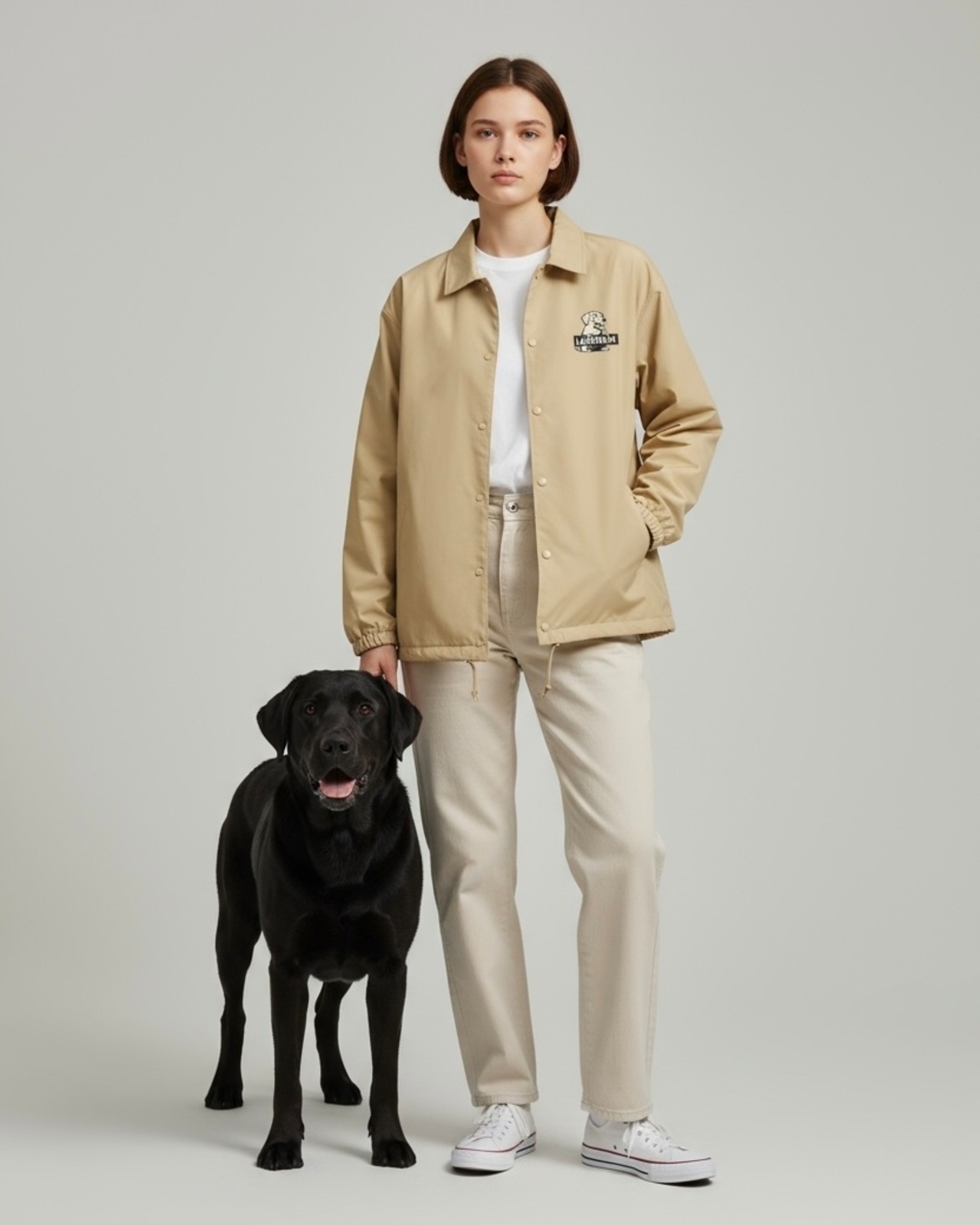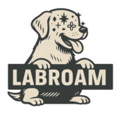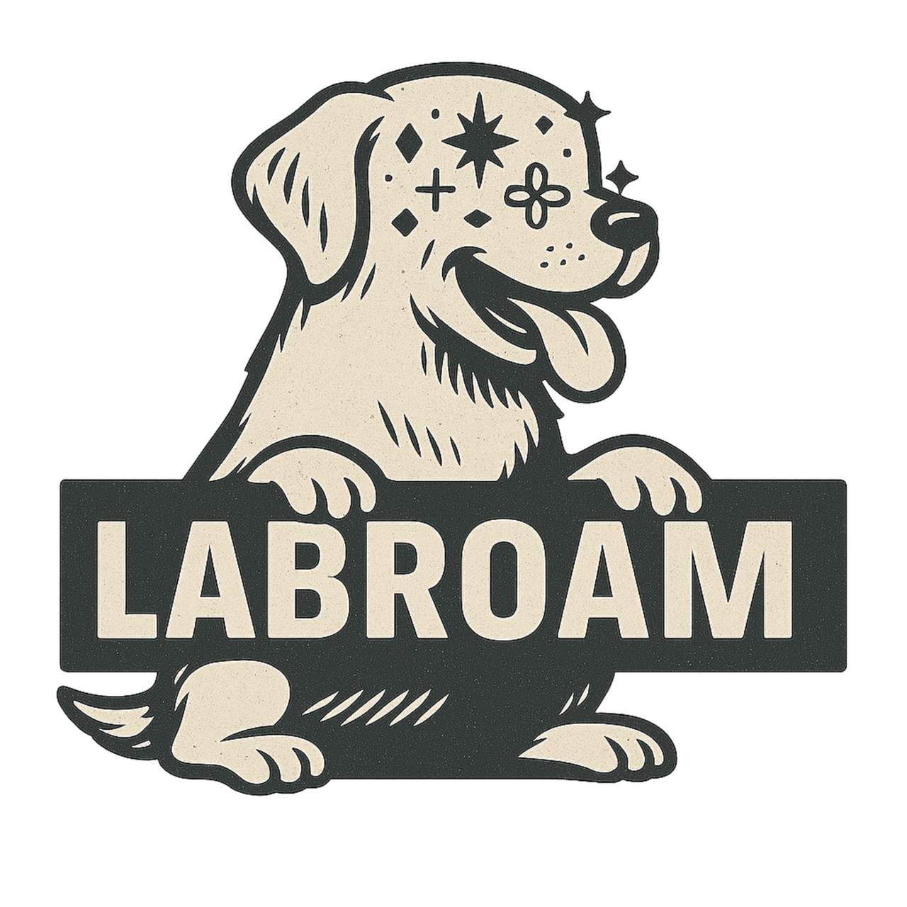 楽しそうに笑うラブの顔と「LABROAM」のロゴを組み合わせた、遊び心あふれるデザイン。