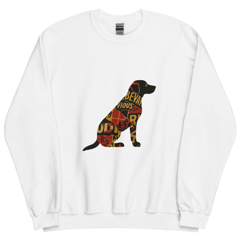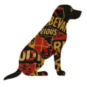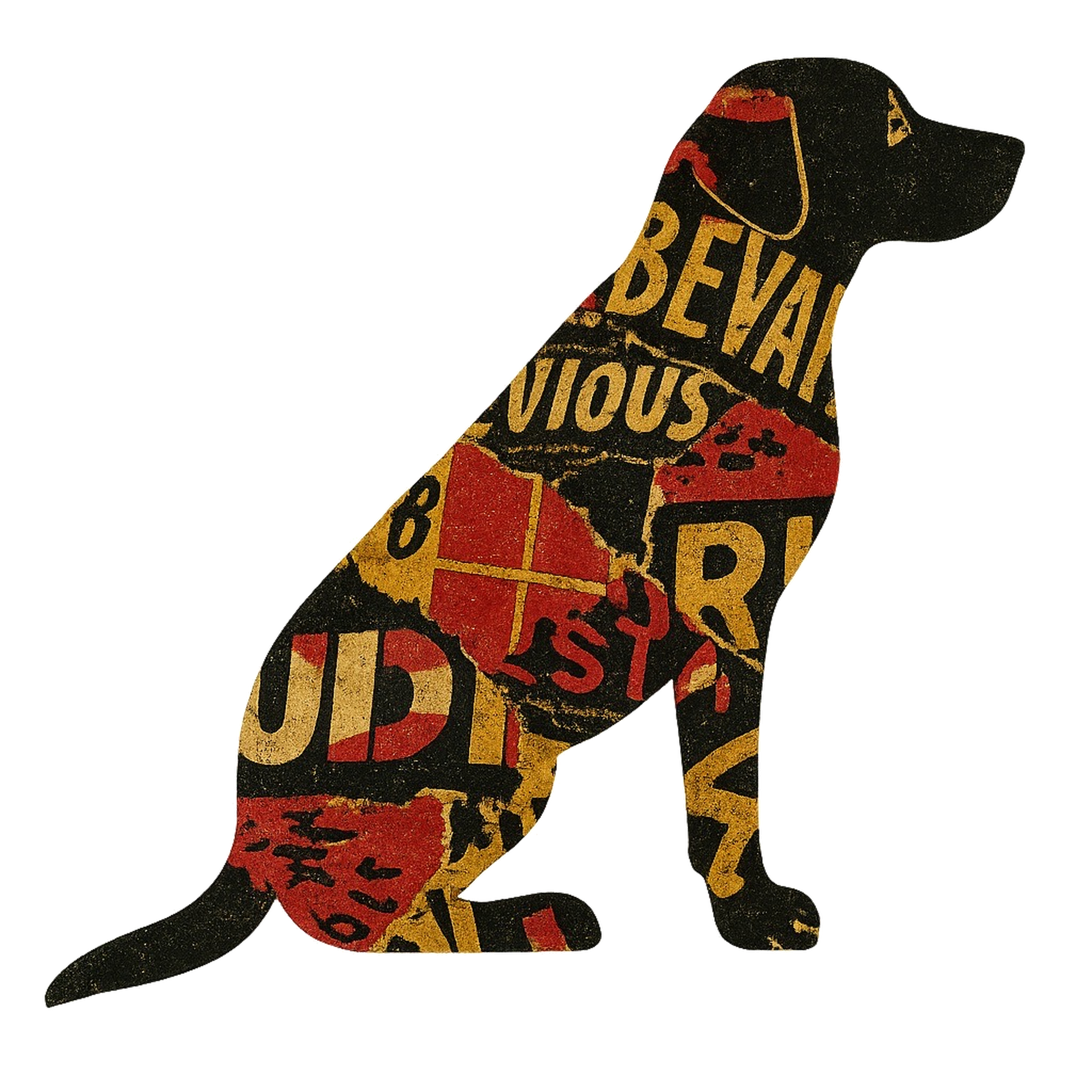 ヴィンテージポスターのような質感と、ブラックラブラドールのシルエットを組み合わせた個性派アート。