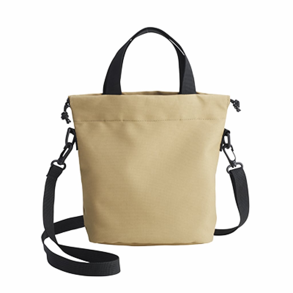 本体上部にはドローストリング(紐)が付いており、キュッと絞ることで巾着型としてもお使いいただけます。